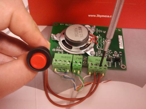 Configurar el AUDIOPICTO con el jumper. Poner el jumper LOGICA en NORMAL para pulsadores normalmente abiertos (por defecto). Para pulsadores normalmente cerrados poner el jumper en INV.