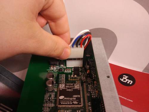 Abrir la tapa y conectar el cable de 4 hilos suelto. Este conector se tiene que conectar en el ascensor para evitar que la batería se descargue.